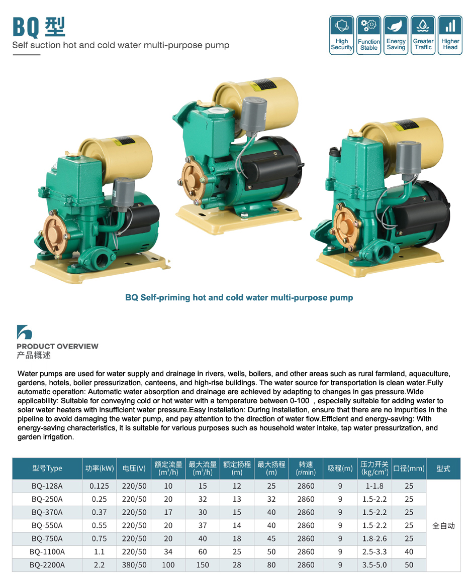 BQ type self-priming hot and cold water multi-purpose pump