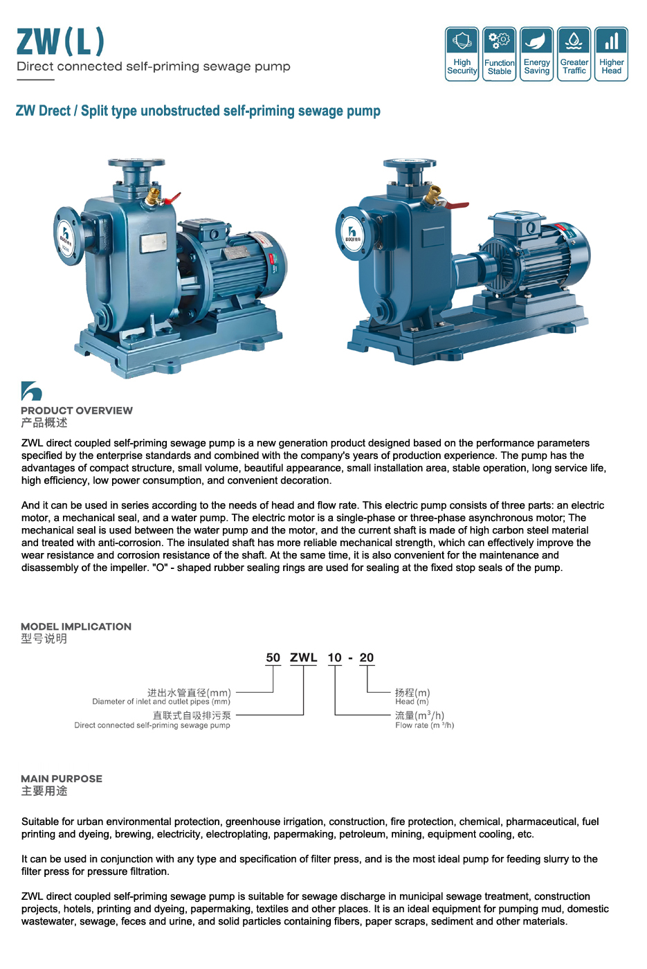 Product Name: ZW direct connected non blocking self-priming sewage pump