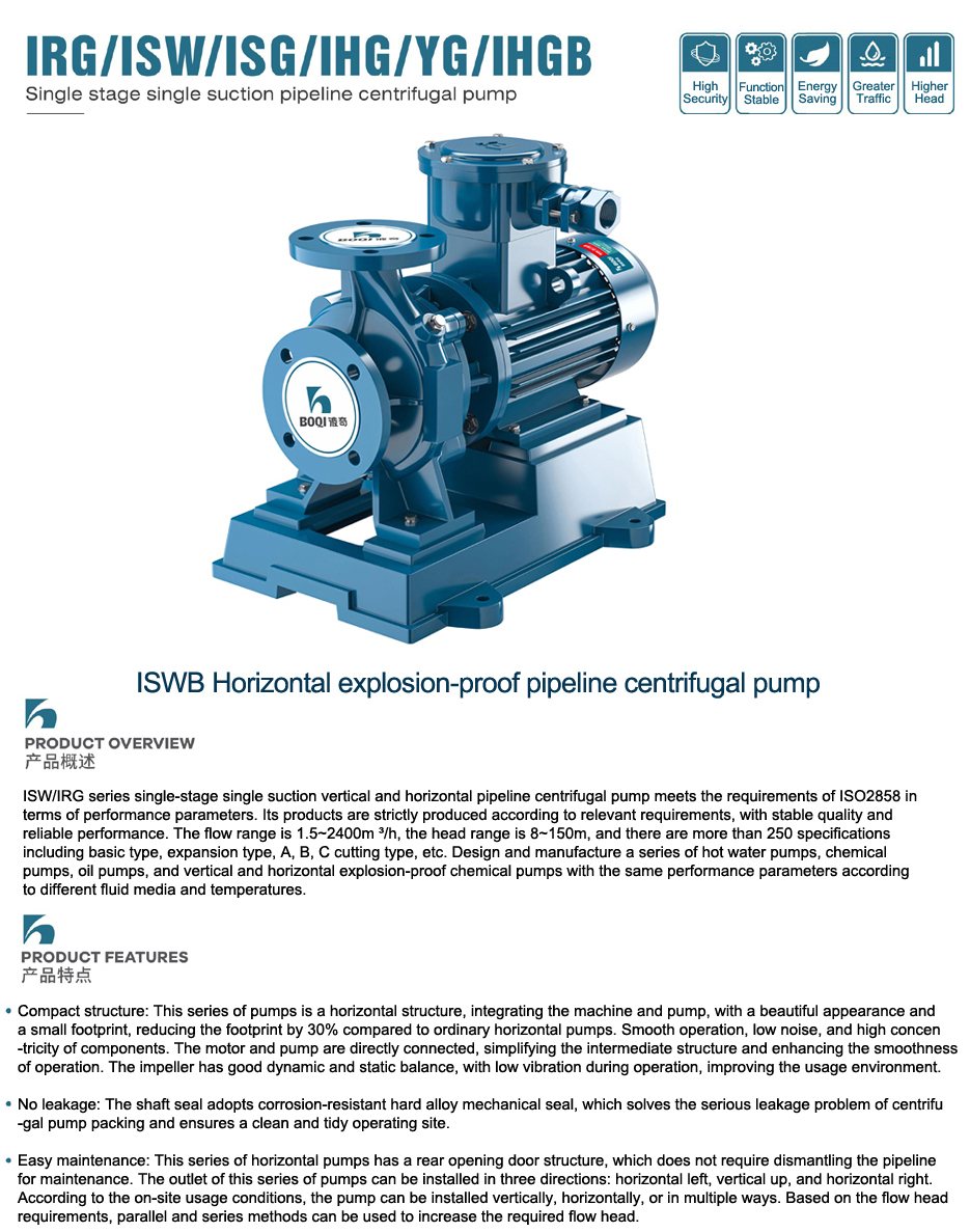Product Name: ISW Horizontal explosion-proof pipeline centrifugal pump